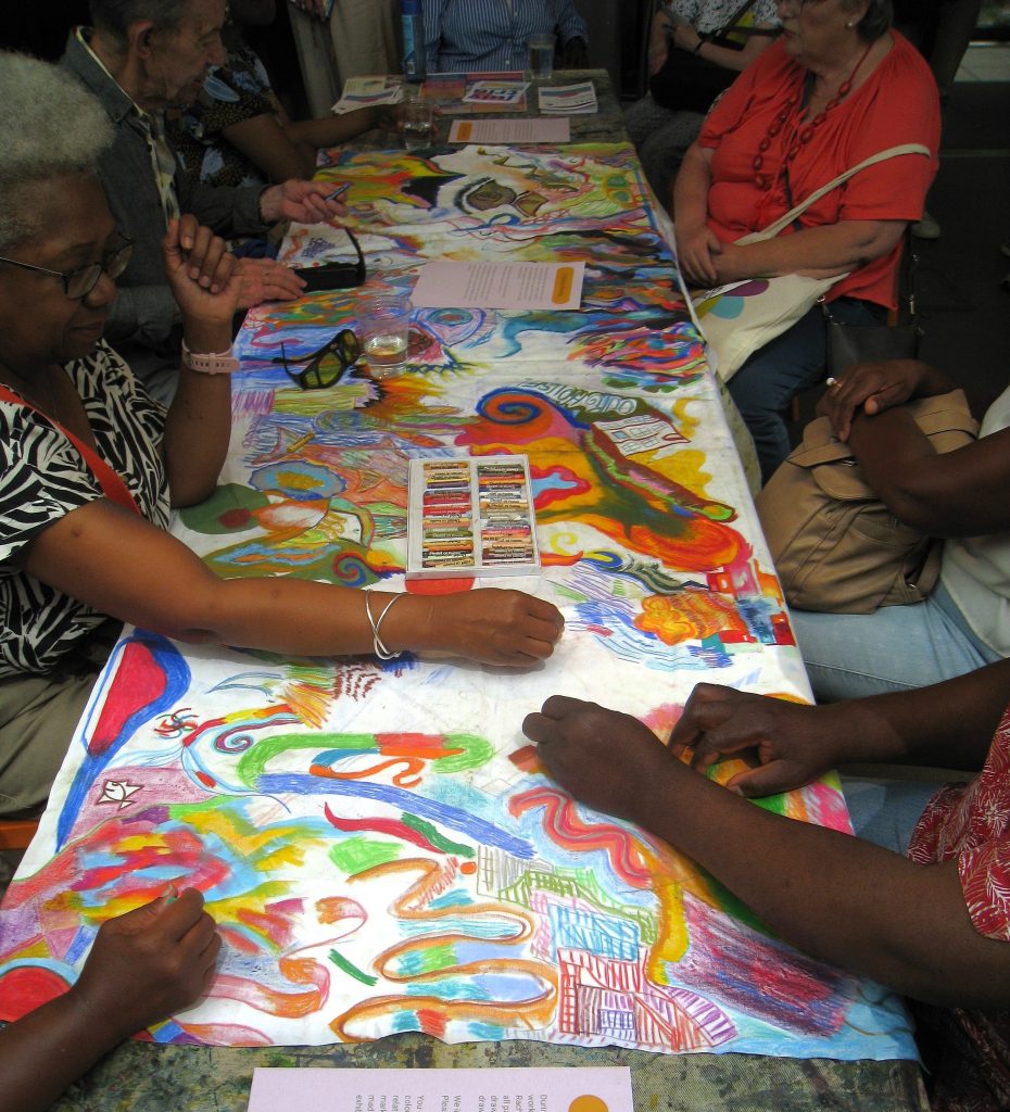 We also run a public programme of free drop-in workshops and events, with some activities open to all ages. Our member volunteers support these sessions, and we often work in partnership with other community organisations and cultural venues including galleries, museums and outdoor spaces.