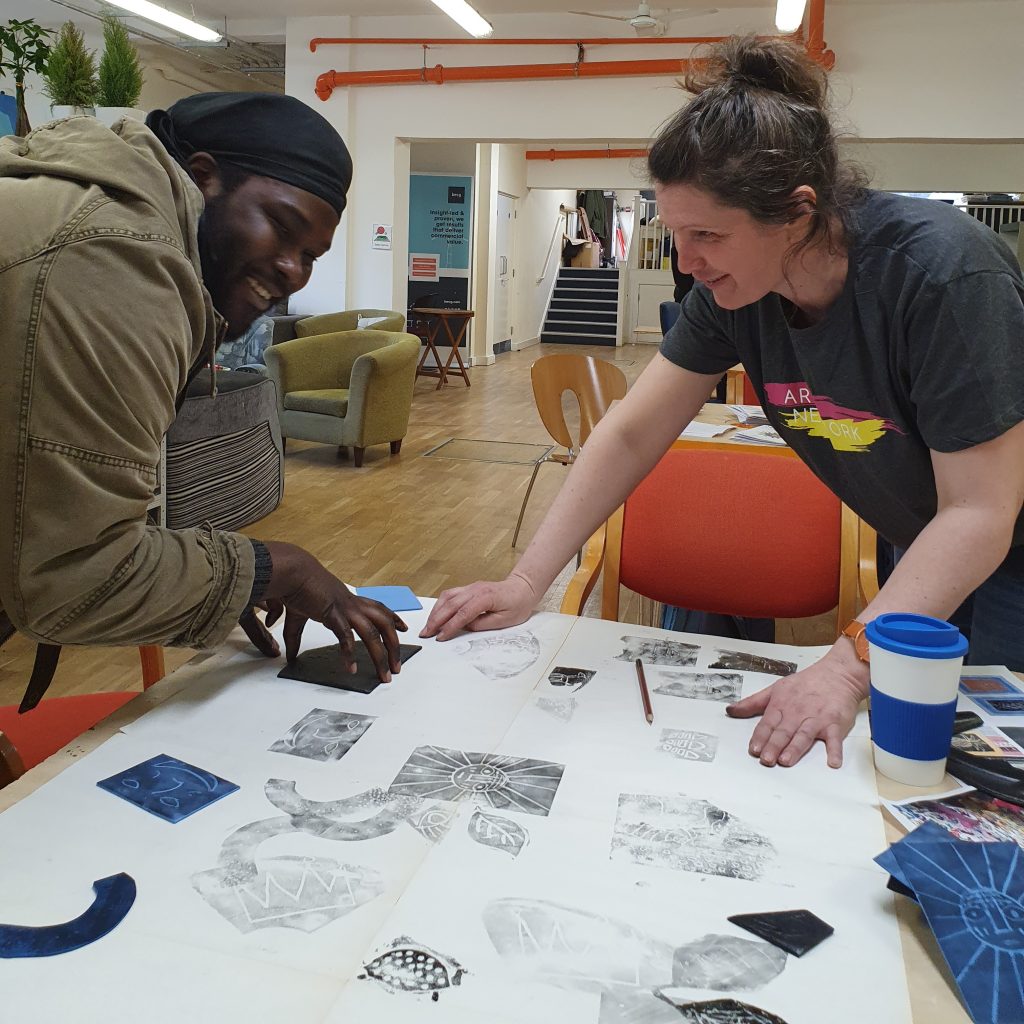 Arts Network is a non-clinical space. Our activities are not led by medically trained art therapists. Instead, we use creativity as a way of encouraging recovery, connection and new opportunities. Members choose how they get involved in group workshops and trips, individual projects, volunteering, accessing welfare support, or just having a place to be and socialise in a safe non-judgemental community.