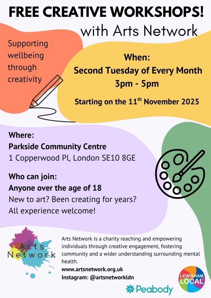 New Monthly Workshops with Arts Network at Parkside Community Centre